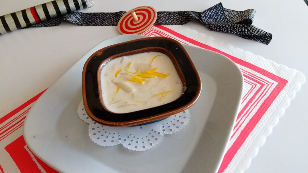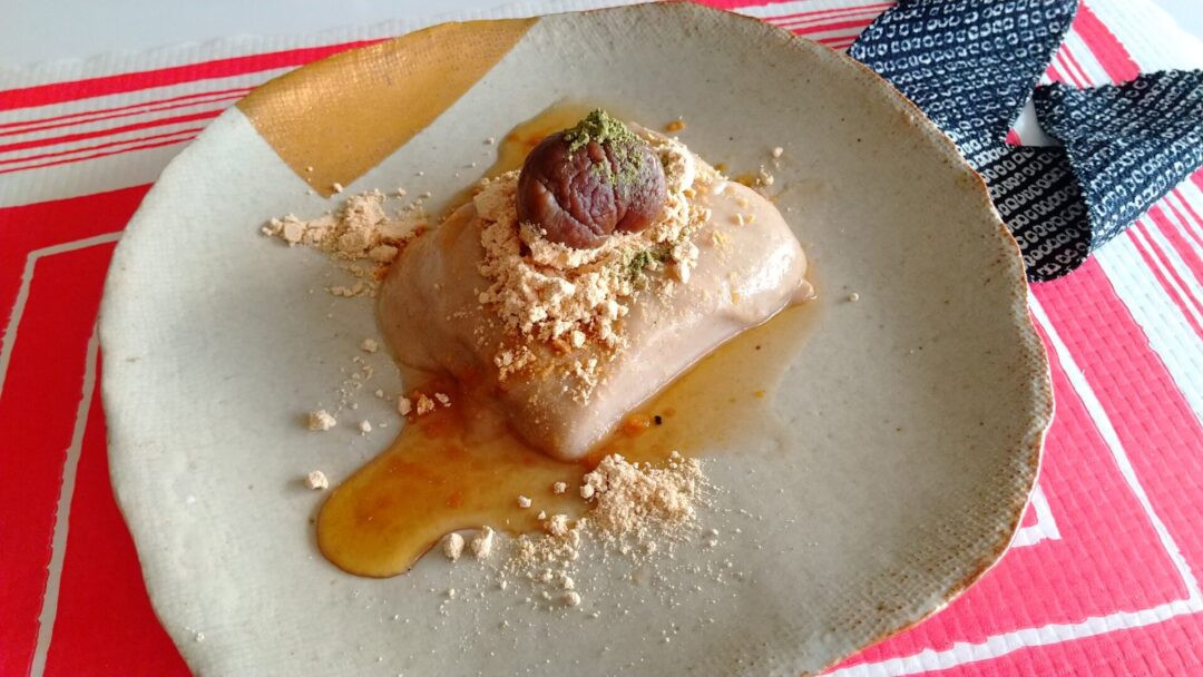 胡麻豆腐(市販)をバターで焼いてブランデーをふり、